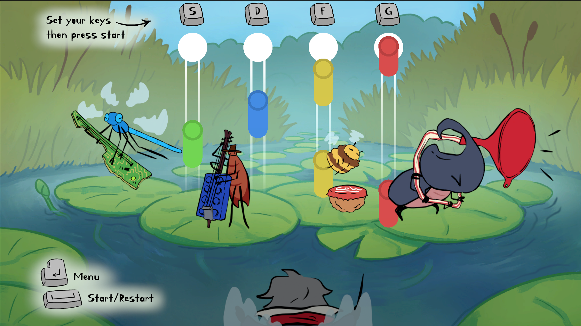 This game was made in one week and submitted to the portfolio builders game jam#63. This project contains absolutely no AI generated content, all of it was made with pen, keyboard, and conductor's baton.